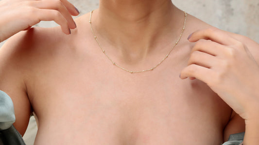 14k Gold Beaded Satellite Choker Necklace - Adjustable Layering for Any Style