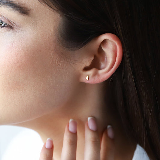14K Gold Mini Number Stud Earrings | Personalized Dainty Silver Minimalist Designs