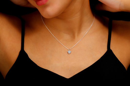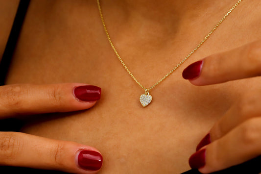 14K Gold Heart Necklace with Pave Diamonds | Forever Love Jewelry in Gold, Silver & Rose | Dainty Everyday Elegance