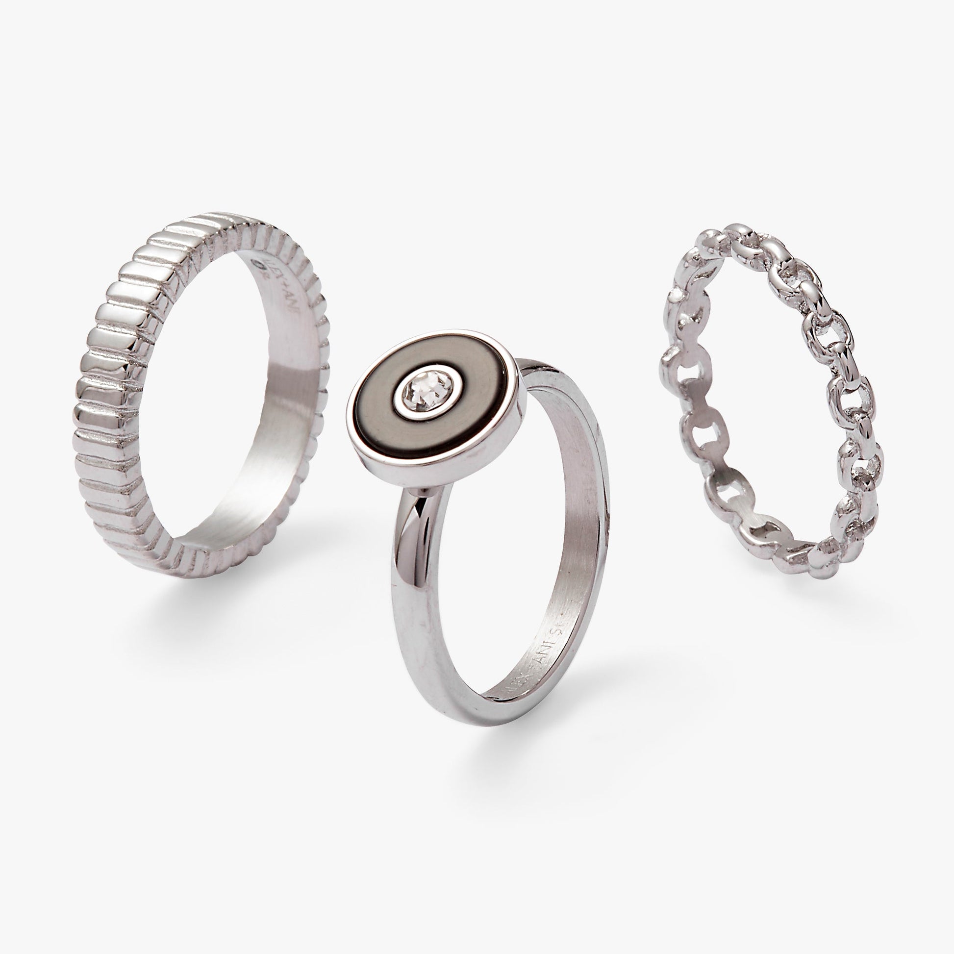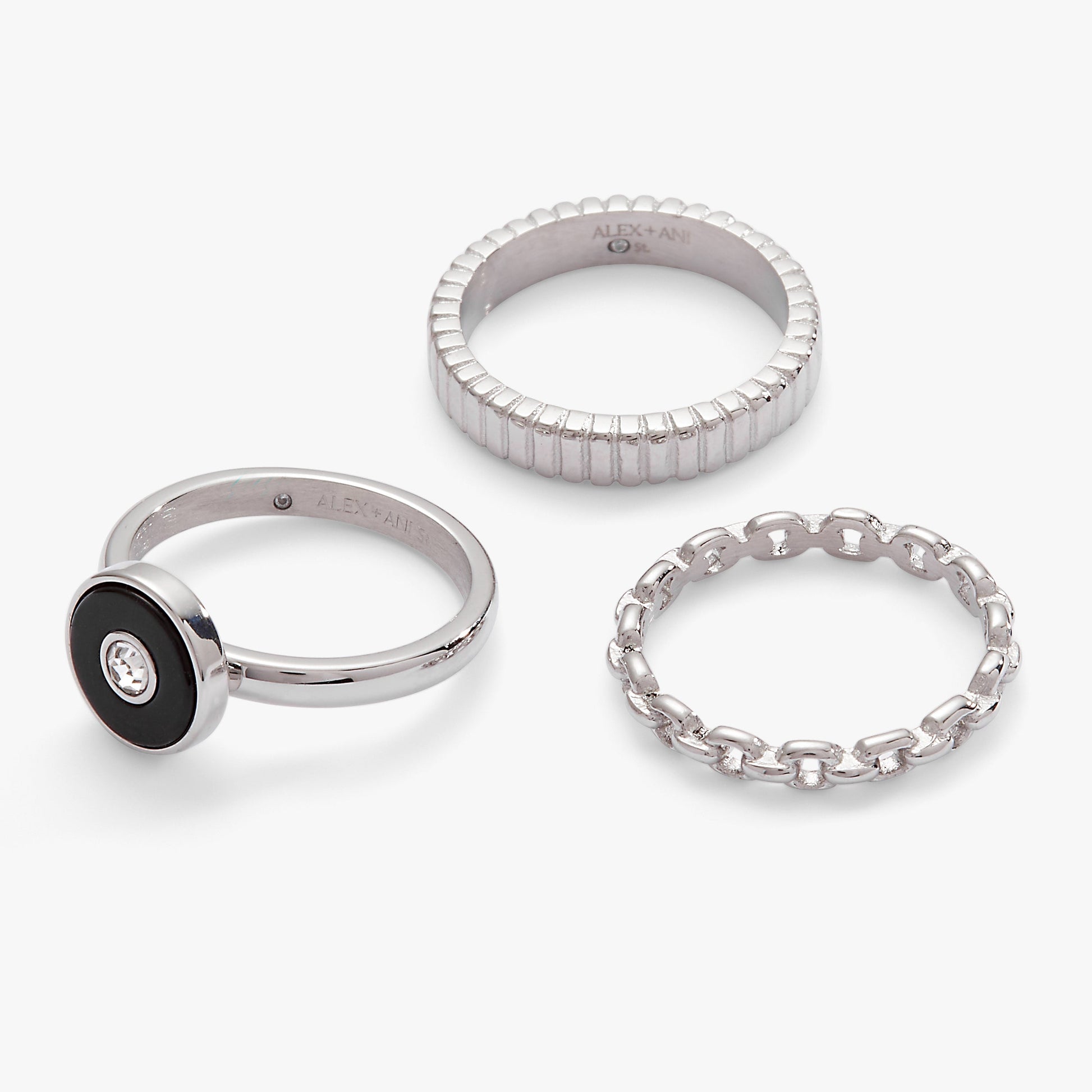 Black and silver are a timeless combination. Give them a modern upgrade with this Black Onyx Textured Statement Ring Set, which has three pieces. One has a circular black onyx crystal with a clear crystal in the center, and the other two are textured stainless steel silver stacking rings. Black onyx is believed to help a sense of centering and groundedness. Channel those powers while making a gorgeous statement.