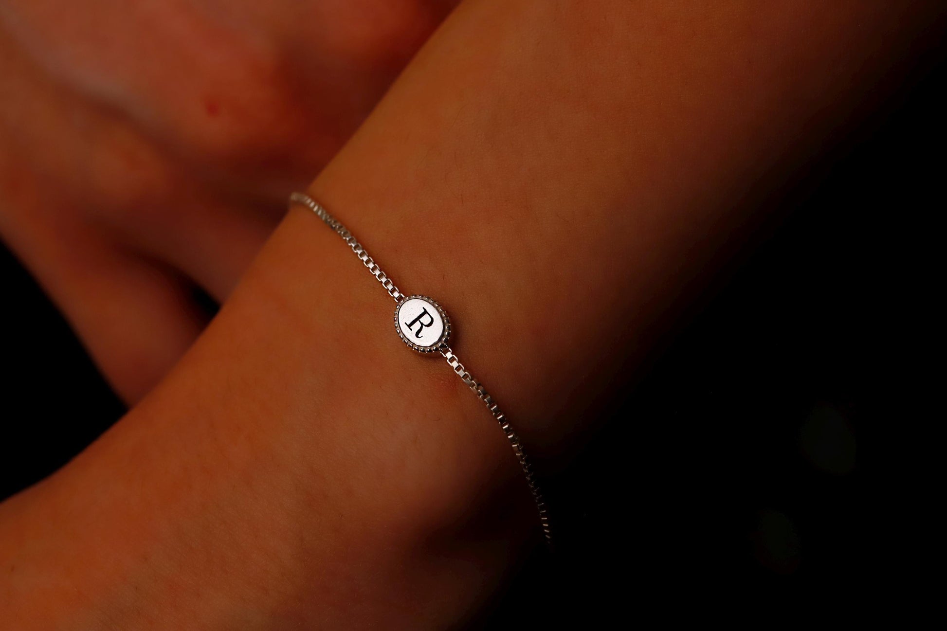 Discover the elegance of our Sterling Silver Tag Bracelet, a perfect blend of style and personalization. This dainty piece is crafted from high-quality 925 sterling silver, making it not just a beautiful accessory, but a cherished keepsake. Whether you want to celebrate your zodiac sign, initial, or special letters, this bracelet adds a personal touch that tells your unique story.